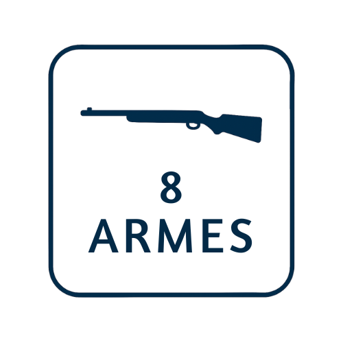 | Capacité fusils | 8 | Nombre d’armes de poing | 5 |